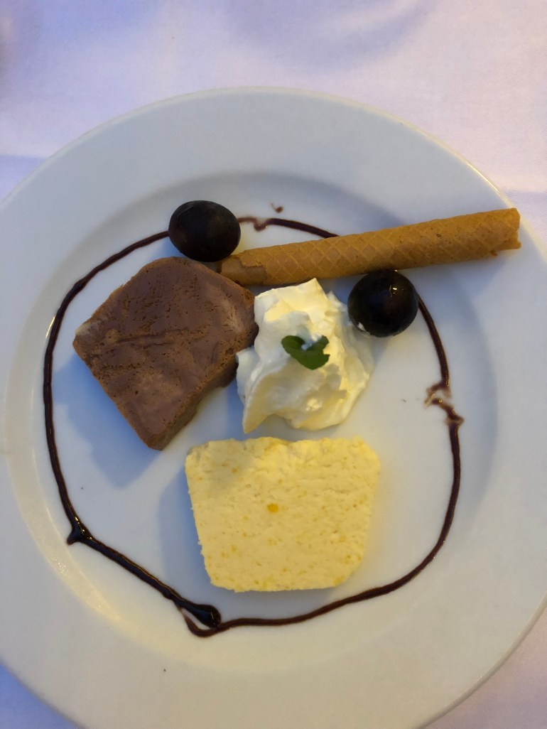 I don’t know about y’all, but some of the best food I’ve ever had came from small kitchens of little hotels and simple places. We ate outside in this charming courtyard. Now, as a southern gal, I heart me some scattered, covered fromWaffle House, so you can imagine my surprise and delight when I read that there was rösti on the menu-yep, I’ll be getting some of that. Rösti is basically the Swiss version of scattered smothered and covered hash browns from Waffle House. Amazing, life changing even. There may have been some butter in this dish. It was fecking delicious. It’s a perfect example of how simple ingredients make the best foods… you don’t need fancy foams or weird gimmicks. The cheese freshly made, the bacon crisp, the tomatoes picked that day…did I mentioned this was smothered in cheese? So good, so good. For desert our lovely server, Jon, recommended some double chocolate mousse and folks, Jon knows what he’s doing here.